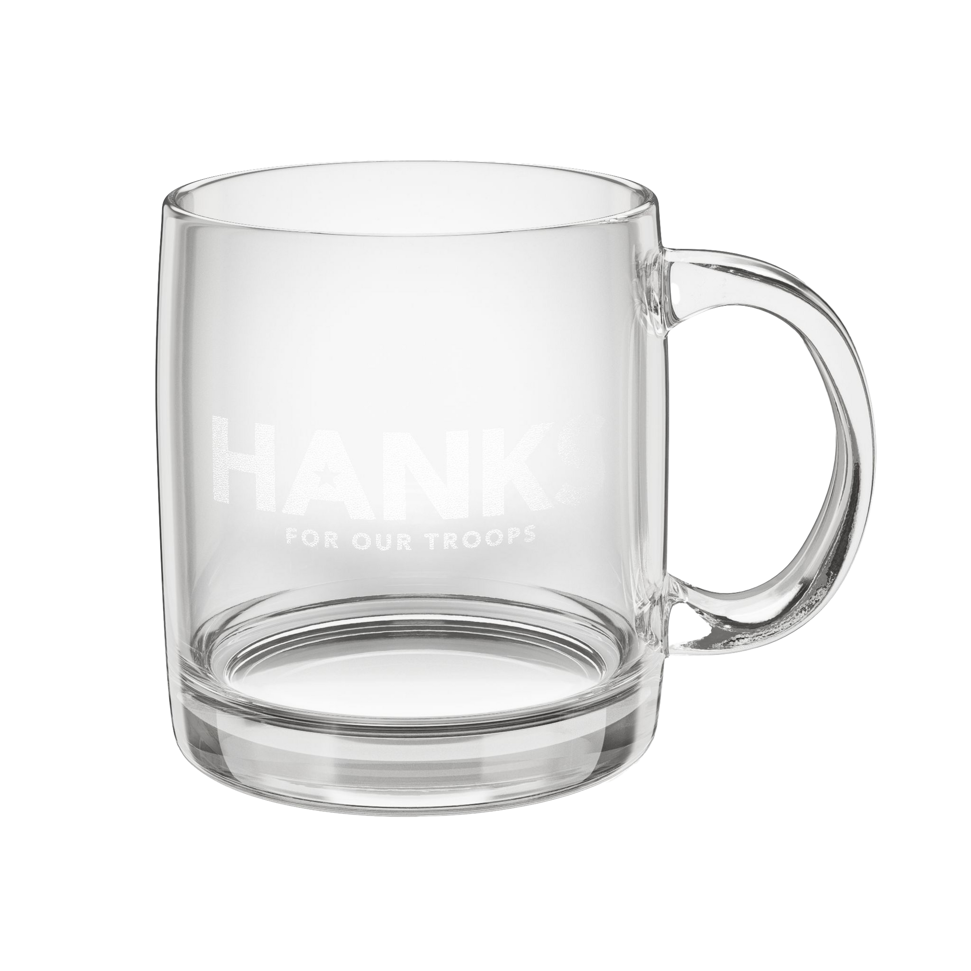 Start your day with a mug that means business and support. This 12.25oz clear glass coffee mug features a crisp laser-engraved design. The clear glass adds a touch of classic style to every hot or cold sip, while the durable construction offers ultimate convenience. Unlike printed designs, the laser engraving is clean, permanent, and guaranteed not to rub off.