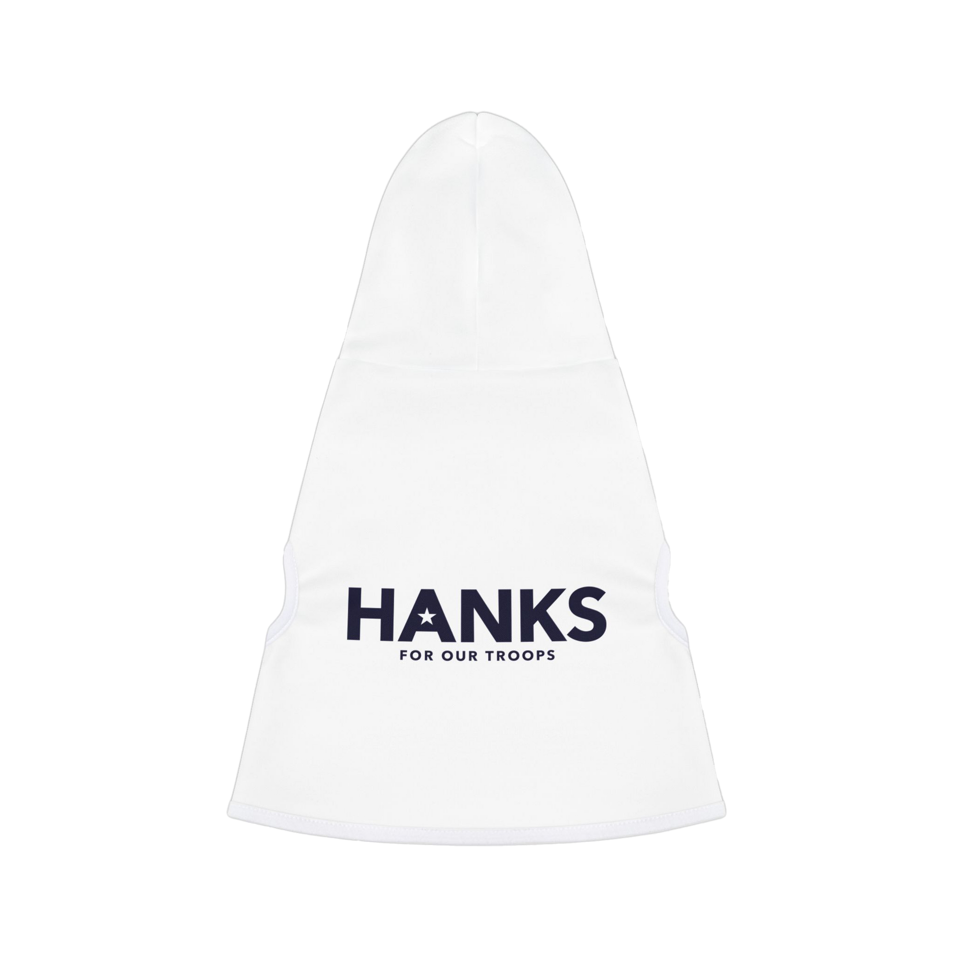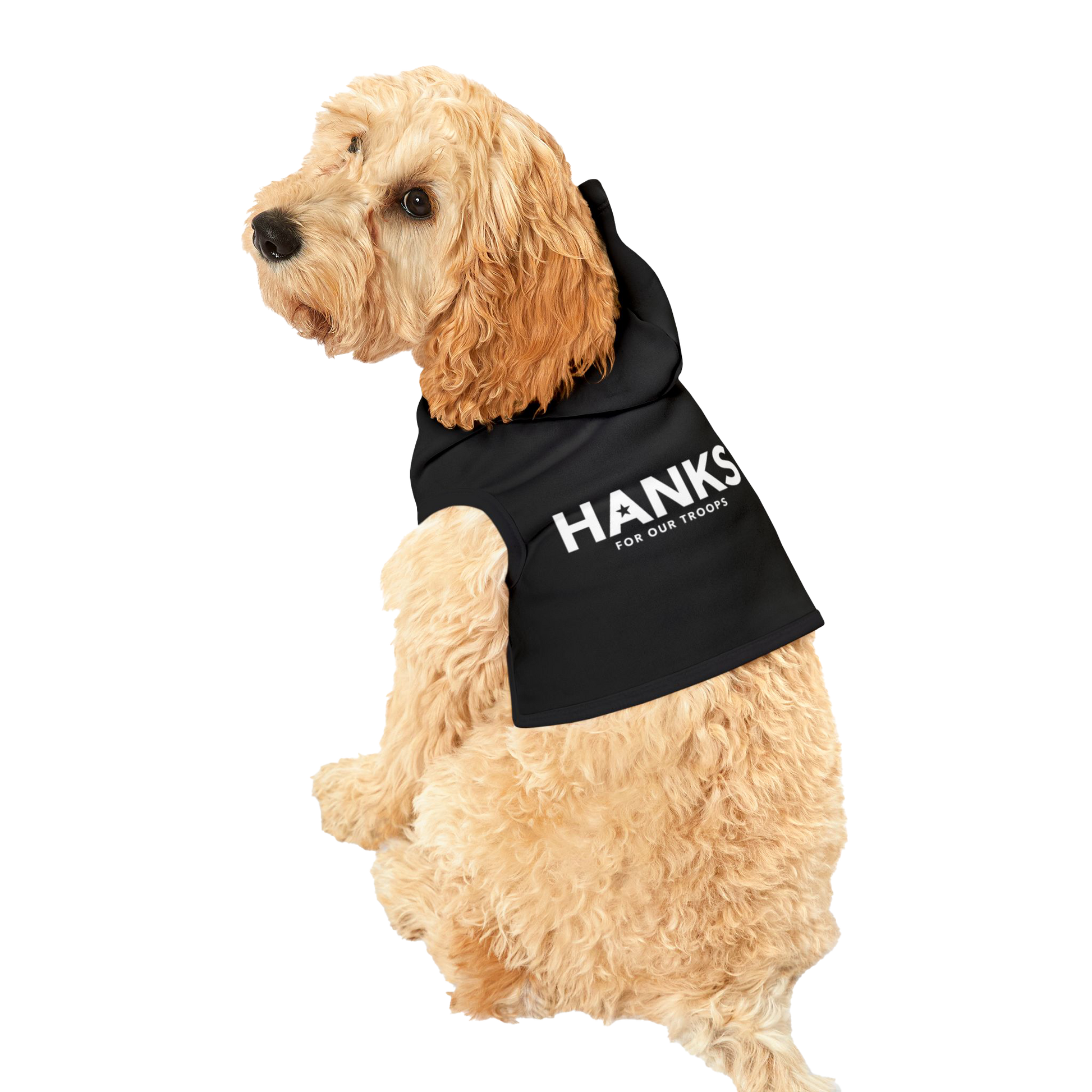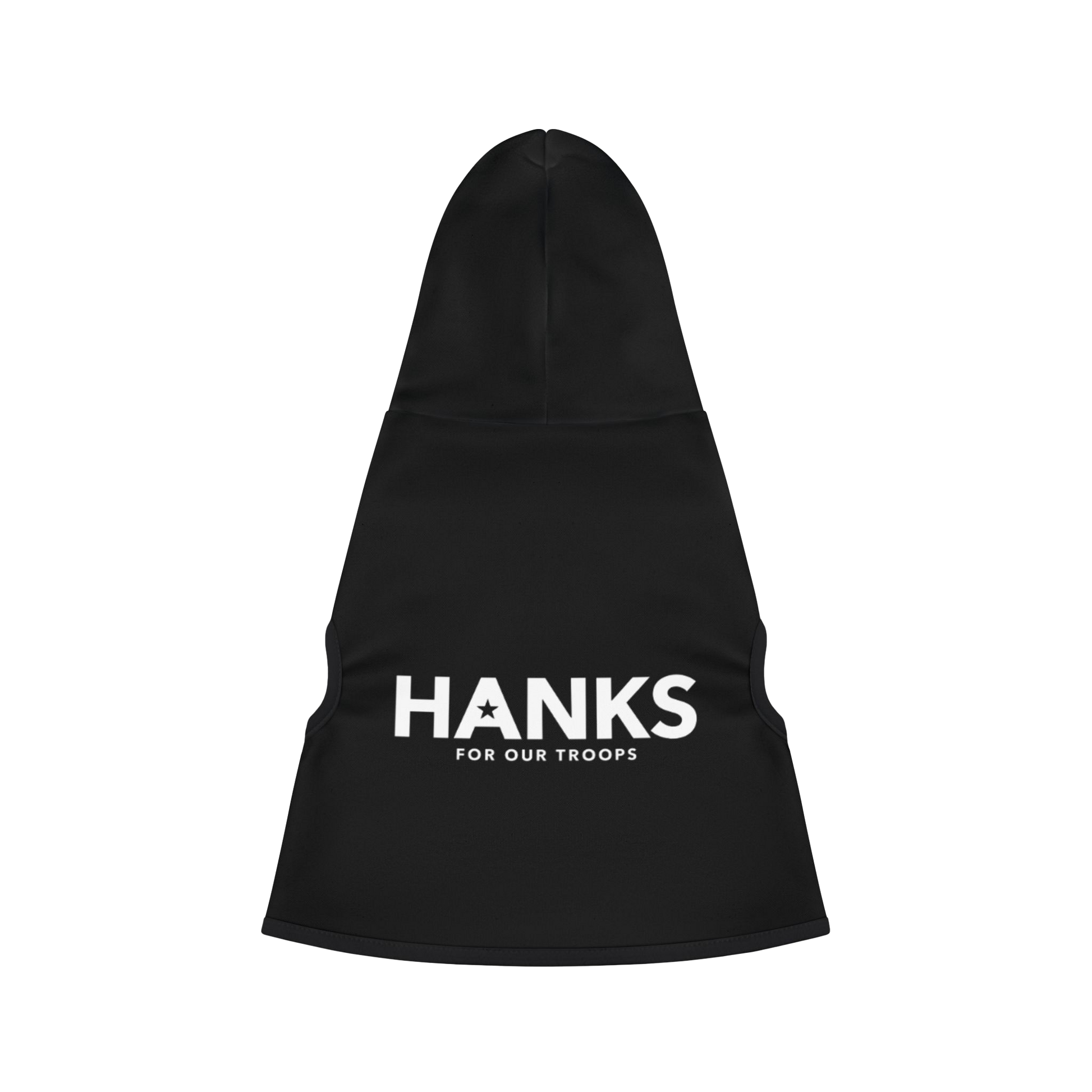 Let your companion join the mission! This lightweight pet hoodie features the bold "HANKS FOR OUR TROOPS" wordmark across the back, giving your pet a clean, modern, and supportive look for every outing.