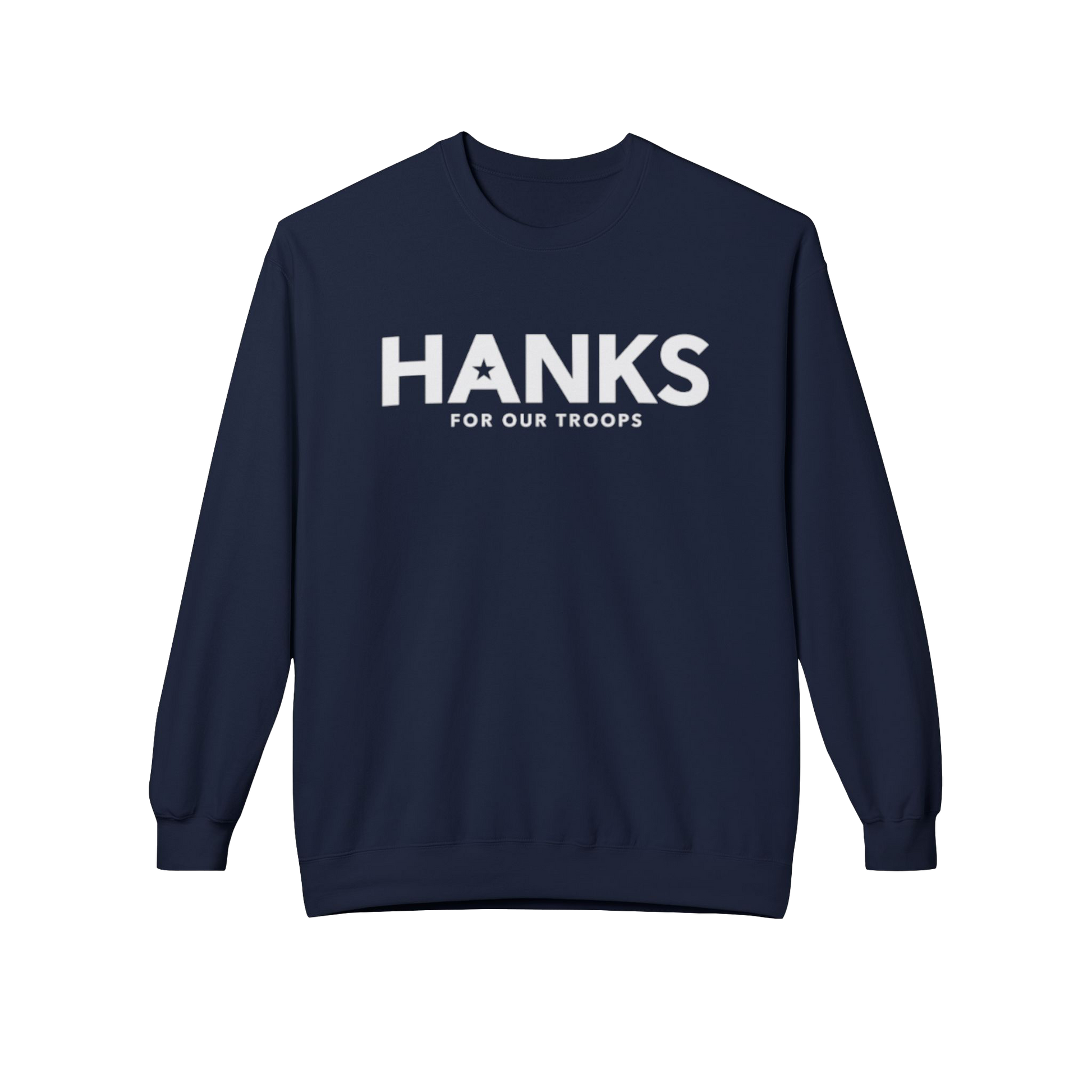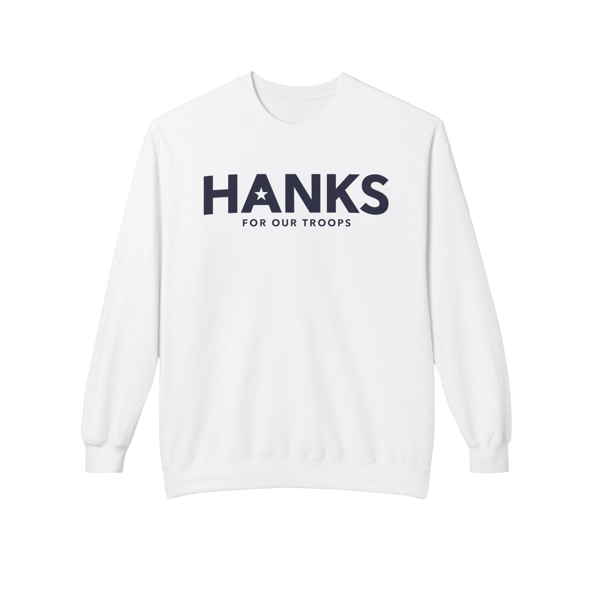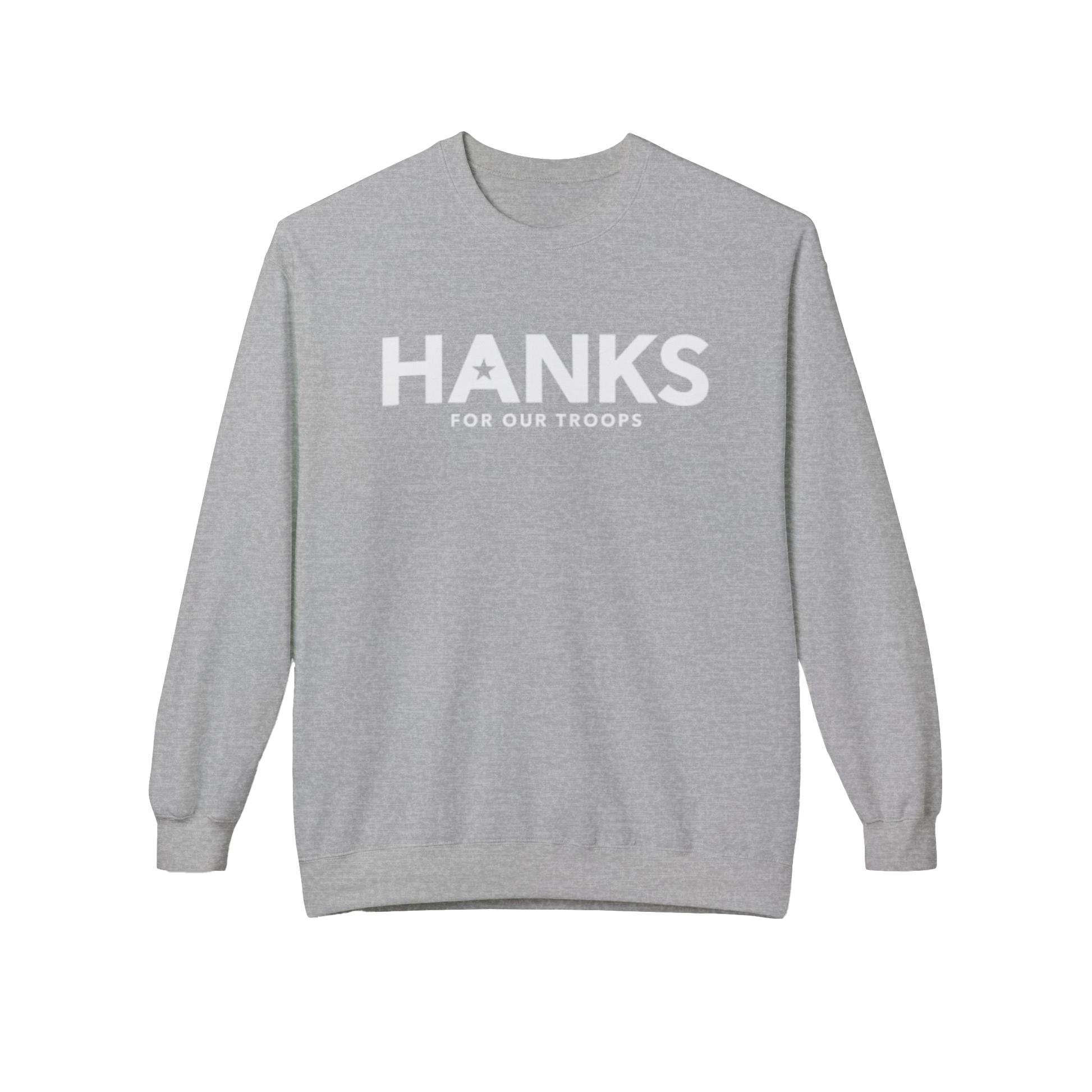 Layer up for a cause in this premium Unisex Midweight Softstyle Fleece Crewneck. Featuring "HANKS FOR OUR TROOPS" on the chest and "COFFEE THAT SERVES" on the back, this sweatshirt is a comfortable tribute to service.